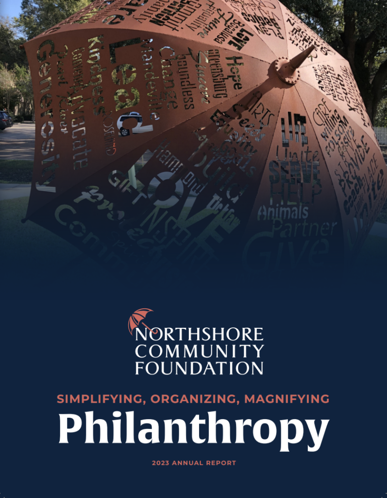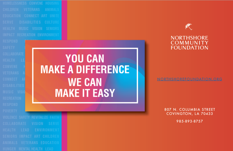 The Northshore Community Foundation is a catalyst for philanthropic activity in our four parish region and a driver of major civic efforts. We offer innovative solutions that help individuals, nonprofits, and companies bring their charitable visions to life.